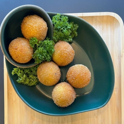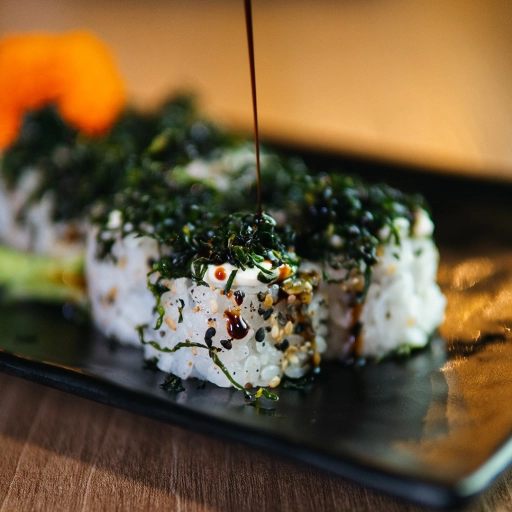 Salmão, alga, arroz e cream cheese empanados, tarê e cebolinha